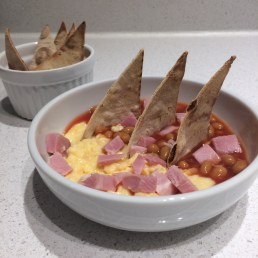 Cut into triangles, they have given boring old egg and beans (one of my super-quick after school teas) a new lease of life as… egg and beans with crispy sails!