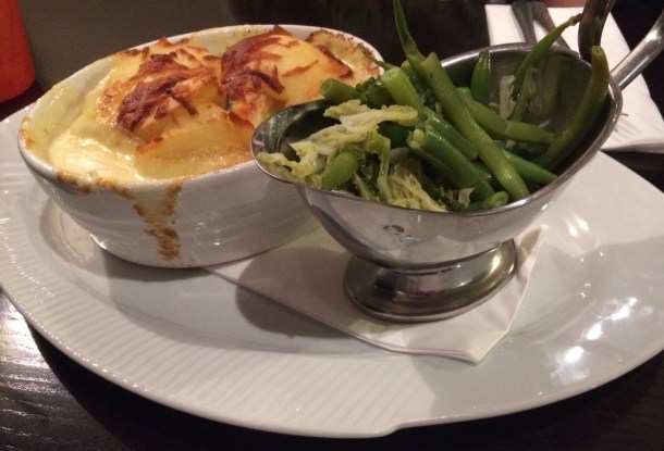 The boys really enjoyed the fish pie, although there was a very long and drawn out episode of getting boy no. 2 to eat a couple of green beans and try the cabbage. At one point he offered the contents of his piggy bank in exchange for not eating the green beans, which was very tempting as it contains his birthday money. He saw sense eventually. Apologies to the people on the next table – things got slightly raucous at one point.