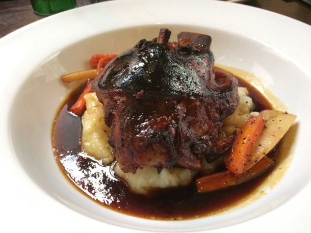 I too was presented with a proper Yorkshire portion. I’m not sure anybody really needs to eat a whole ham hock in one meal (and I consider myself a bit of a pig, so that’s saying something). But it did taste divine. The meat just fell apart, and the mash sweetened with apple was fantastic – a very well balanced flavour. The only thing it could have done with is a bit of green veg because it was so rich, but all in all, I really enjoyed it. I’d say the jus was a gravy to be honest, but that’s not a complaint – I like gravy.