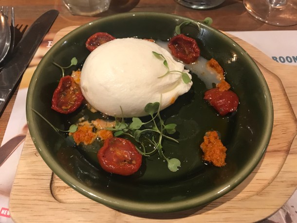 For a starter, I went for the Burrata, which is a very creamy version of fresh mozzarella cheese, served with some sun dried tomatoes and an artichoke and red pepper dip. Very nice.