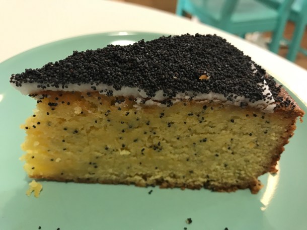 I went for a lemon and poppy seed polenta cake and it was blooming lovely. Possibly the best polenta cake I’ve tried – fairly light, nice and moist with a delicious lemony tang. I must go back to try the rhubarb one.