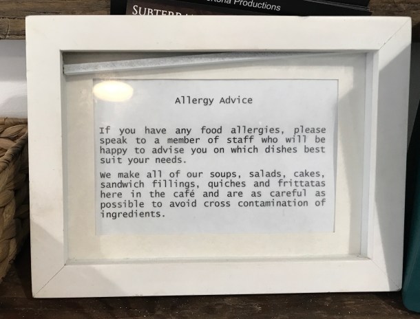 I was also really pleased to spot the really welcoming allergy notice. So unusual right now, when there are so many disclaimers about.