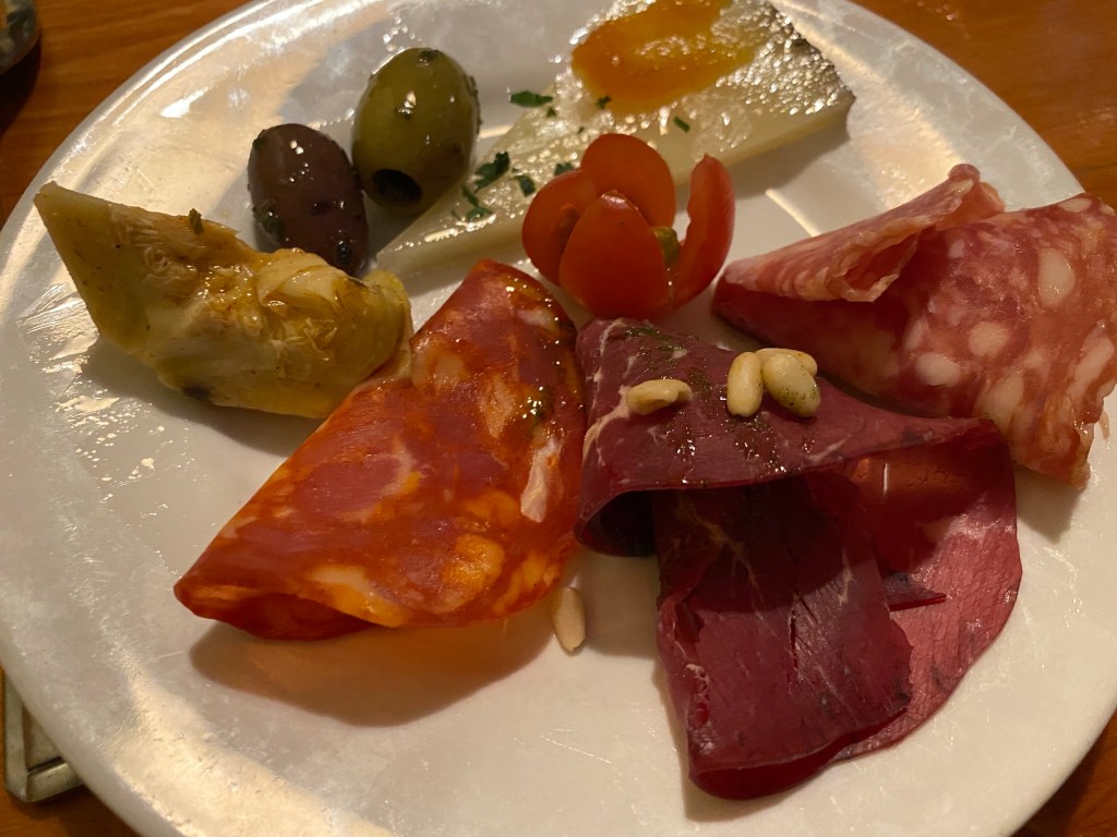 Plenty of the menu is gluten free (with clear labelling on the main menu) so there was lots to choose from. We started with an antipasti platter, olives and Manchego. There’s a link to the menu here but I think they change it so it might expire after a while.