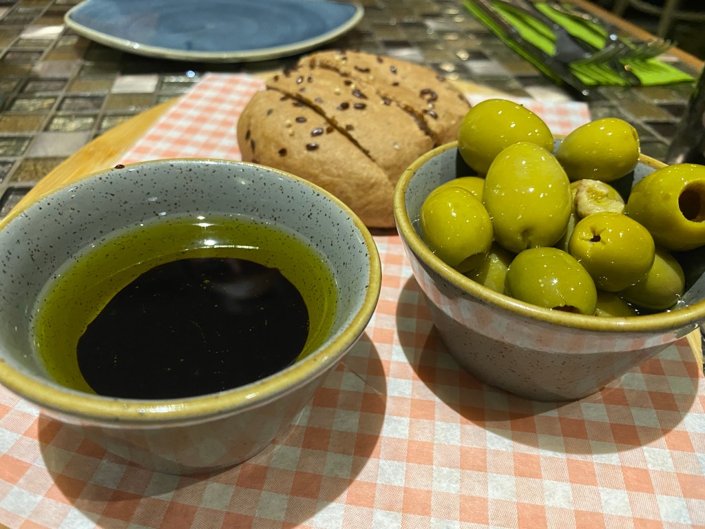 We started with an appetiser of bread and olives. I have to say the bread was surprisingly good, with a brilliant texture – a very promising start to the meal. I was told it came from Morrisons, but I’ve no idea what brand.