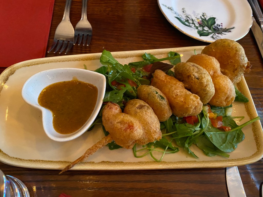 We were too full for a pudding and needed to get back to the retail, but before we left, we were treated to a shot of something (schnapps maybe?) to send us on our way. A reminder of my dim and distant youth! I might have been tempted by the tiramisu though – I’ve never seen gluten free tiramisu in a restaurant.