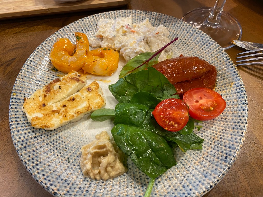 We ordered a selection of mezze to share for starters, thinking they would be fairly tiny plates, but they were really quite big portions. You can’t really tell from the photo above, as I’ve only loaded up a one-person sized amount. But in all honesty, a couple more mezzes between us and we wouldn’t have really needed main courses.