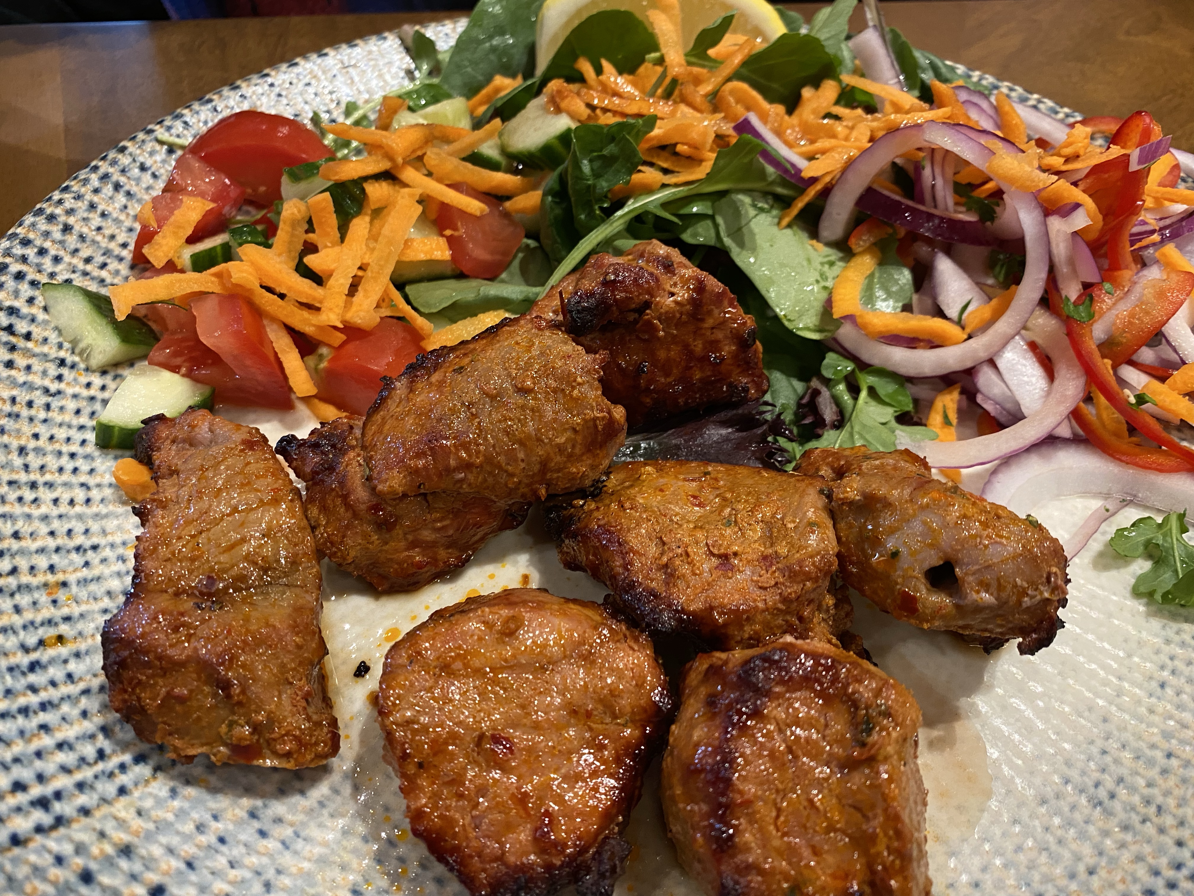 I’d have been less over-faced with the shish and the salad, without the chips! However, it tasted brilliant and I did manage to polish off most of it.