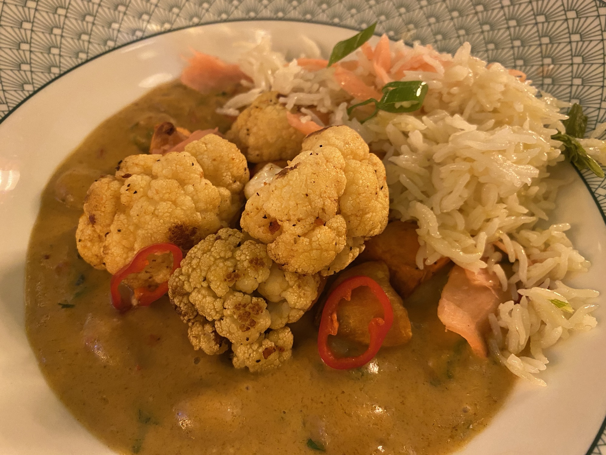 For main course, I had a Massaman cauliflower curry, which also included sweet potato, sugar snap peas and butterbeans, and a side of spring onion rice. This was also really flavoursome, with just enough bite to the cauliflower.